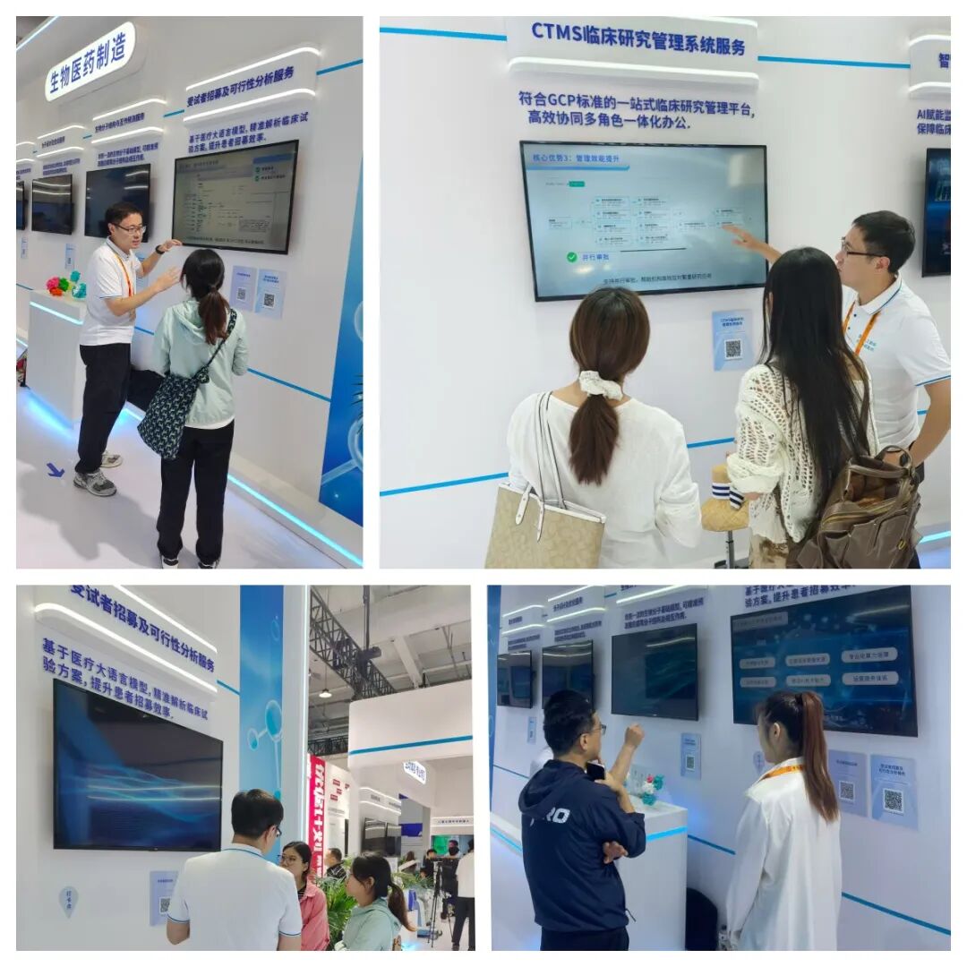 At the CIFTIS exhibition zone, Yidu Tech showcased both the “CTMS Clinical Trial Management System” and the “Intelligent Clinical Trial Subject Recruitment & Feasibility Analysis Platform,” attracting many attendees for detailed exchanges and inquiries.