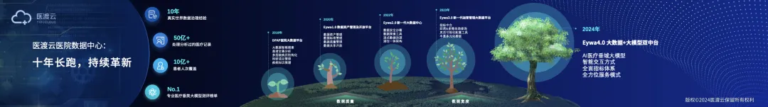 醫(yī)渡云在醫(yī)療大數(shù)據(jù)與人工智能這條跑道上探索和耕耘了十年。從2019年發(fā)布的第一代數(shù)據(jù)中心逐步發(fā)展到今天的Eywa4.0,Eywa這棵數(shù)據(jù)生命之樹已經(jīng)從一棵小樹苗長成了參天大樹。