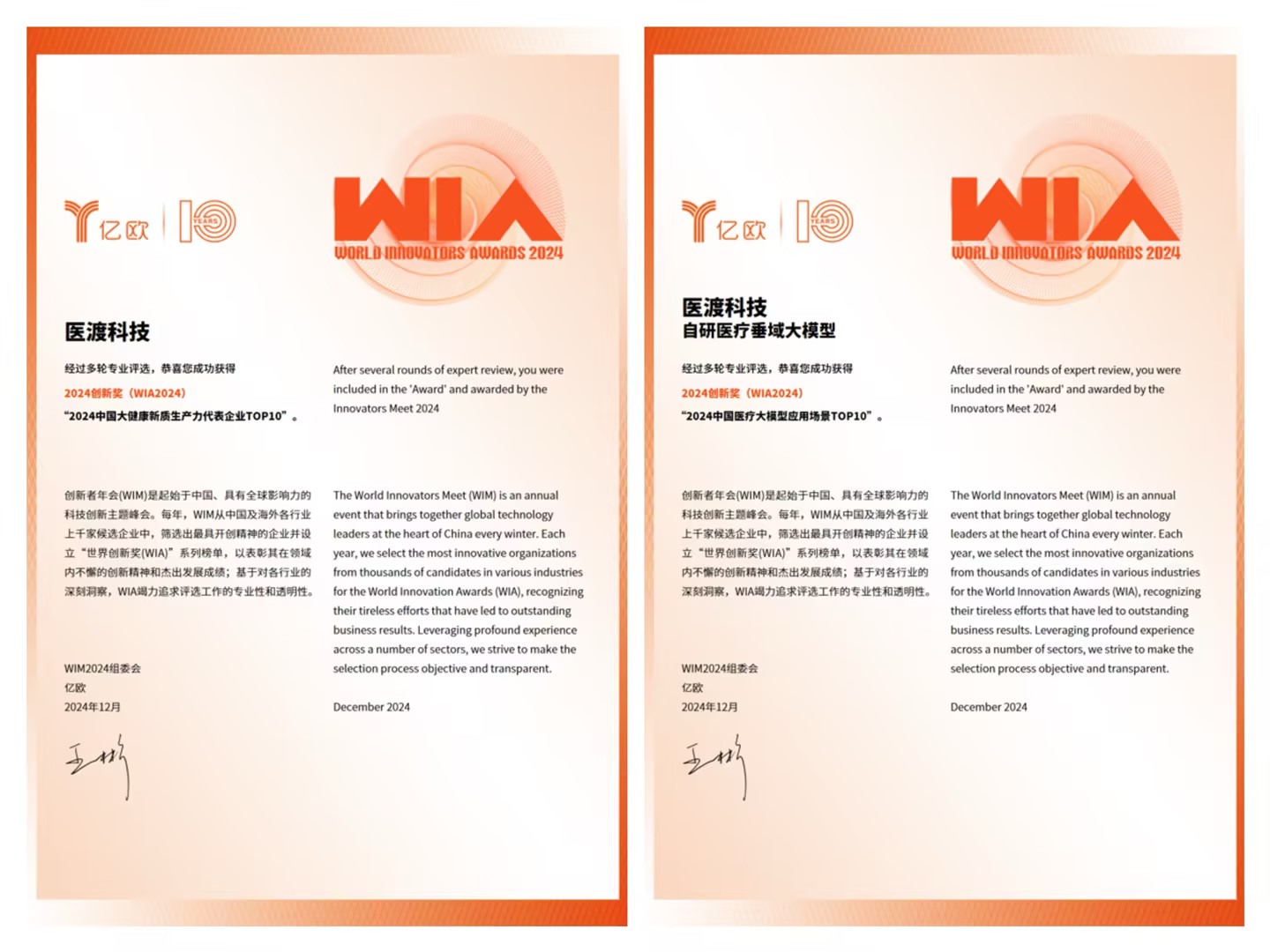 WIM2024創(chuàng)新者年會丨醫(yī)渡科技榮登新質(zhì)生產(chǎn)力與醫(yī)療大模型雙榜